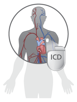 An ICD is a small device that is placed under the skin of the chest. Wires (called “leads”) connect the ICD to the heart. An ICD is designed to prevent an at-risk person from dying suddenly from a dangerous heart rhythm. When it senses a dangerous heart rhythm, an ICD gives the heart an electrical shock. It does this in order to get the heart to beat normally.